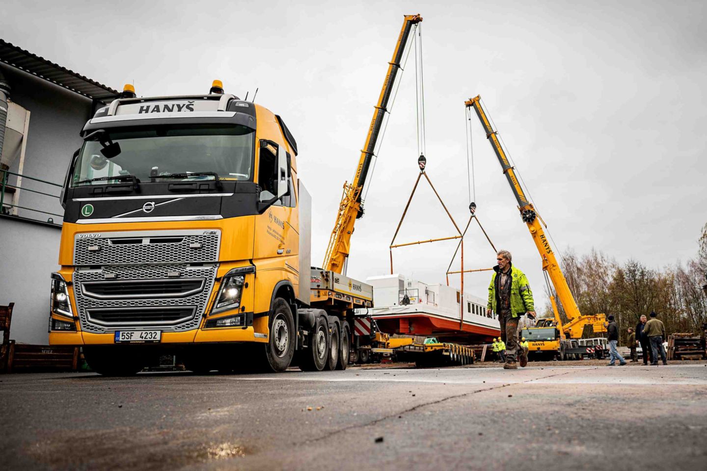 Jak jsem zmínil, naše společnost však nezajišťovala pouze samotnou nakládku, ale kompletní přepravu. Již od roku 2006 provozujeme vlastní divizi těžké přepravy tak, abychom dokázali našim zákazníkům poskytnout ucelenou nabídku špičkových služeb. Dnes proto provozujeme flotilu téměř 40 návěsových souprav, které kromě samotné těžké přepravy slouží pro přepravu protizávaží k jeřábům. A stejně jako neděláme kompromisy u samotných jeřábů a používáme výhradně německou značku Liebherr, tak i u tahačů u těžké přepravy spoléháme především na značku Volvo.“